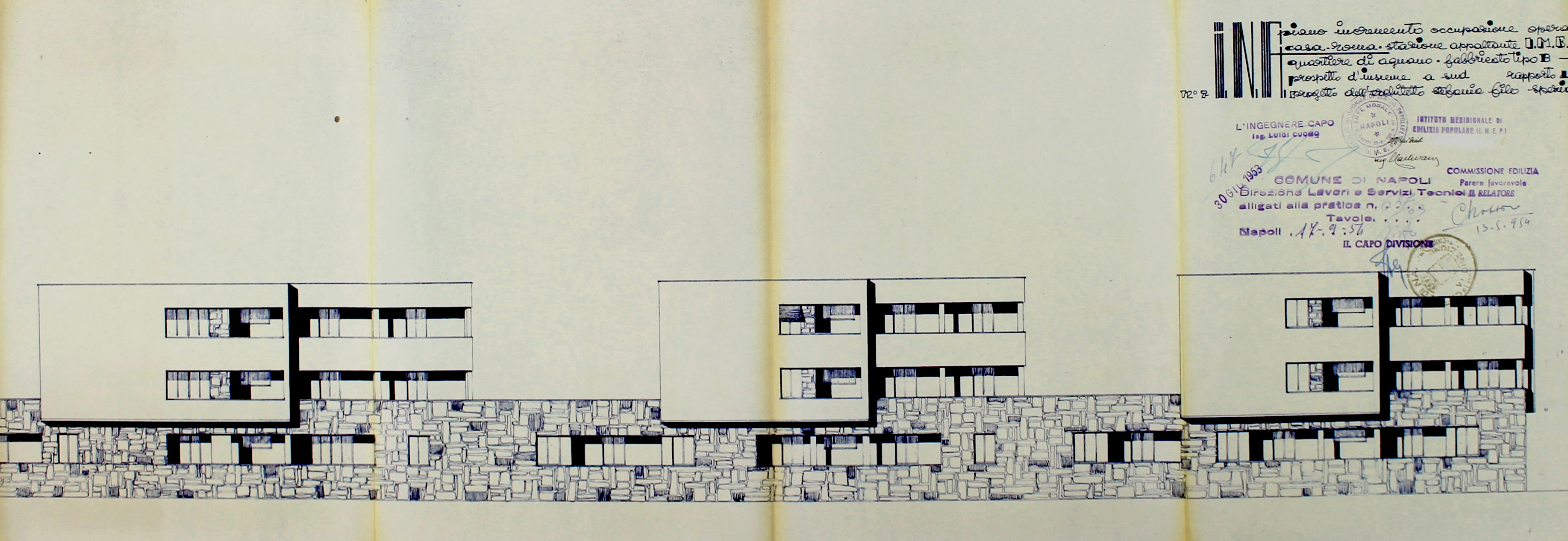 L’immagine della città costruita è parte della percezione che ne hanno i cittadini che la vivono. La sua rappresentazione, grafica e fotografica, concorre alla lettura critica delle profonde trasformazioni dello spazio urbano, avvenuta, in particolare, all’indomani del trauma vissuto dall’essere state molte città ridotte in macerie alla fine del secondo conflitto mondiale. La perdita di una parte dell’immagine storica avvia un processo di revisione anche dello “stile Alinari”, ereditato dal vedutismo settecentesco mentre si inizia a guardare all’ambiente umanizzato e realistico. Da questo punto di vista un “osservatorio” delle trasformazioni è senz’altro quello legato alla costruzione delle case popolari. Non è senza significato evidenziare che la crescita urbana nell’Italia del dopoguerra, rispetto ad esempio ai modi di abitare di tipo anglosassone legati alla diffusione del mezzo di trasporto che genera uno sviluppo di tipo suburbano, si caratterizza invece nella scelta del “vivere in città” e del “vivere insieme” (De Pieri 2013). Anzi, se si pensa che l’affermazione economica dei ceti medi è esibita proprio attraverso la proprietà della casa, appare chiara la centralità della ricerca sull’abitazione, anche popolare, negli anni precedenti quelli del boom: attraverso l’accostamento di diverse tipologie edilizie, a torre, a schiera, a pettine, si cerca di raggiungere l’unità compositiva generale, espressione di una auspicata “pluralità nell’unità”, che amplia la città a dismisura, modificandola radicalmente. Tuttavia i quartieri degli anni Cinquanta si presentano più circoscritti, definiti e unitari, al fine di facilitare la conoscenza e di determinare la cordialità dei rapporti reciproci tra i residenti. È soprattutto su tale tipo di esempi che si concentra il presente contributo, con l’occasione del ritrovamento di documenti inediti di progetto, durante il riordino dell’archivio storico dell’IACP Napoli, relativi ai rioni di Bagnoli, Agnano e Soccavo Canzanella nell’espansione occidentale della città, realizzati per conto dell’INA Casa, secondo i progetti urbanistici di Carlo Cocchia, Stefania Filo Speziale e Giulio de Luca. È opportuno rimarcare lo sforzo e l’entusiasmo della fase della Ricostruzione, sancita dal piano Fanfani, che, aldilà degli esiti, appassionò sinceramente più di una generazione di architetti e ingegneri coinvolti nei progetti delle “case bianche”, viste come espressione di modernità, di sperimentalismo e di progresso, come traspare da un video dell’Istituto Luce sull’inaugurazione de La Loggetta e come appare dai disegni in prospettiva proposti di una nuova città sognata, ricostruita, prima dei grandi abusi. Vividezza e coerenza dell’immagine ambientale vengono individuate come condizioni indispensabili per il godimento e l’utilizzazione della città; tali caratteristiche, secondo Lynch vengono riscontrate in quei luoghi dotati di una spiccata leggibilità e figurabilità oltre che essere caratterizzati da struttura e identità: questo era alla base dei progetti dei primi rioni a grande scala ed è invece proprio ciò che oggi la città sta perdendo.