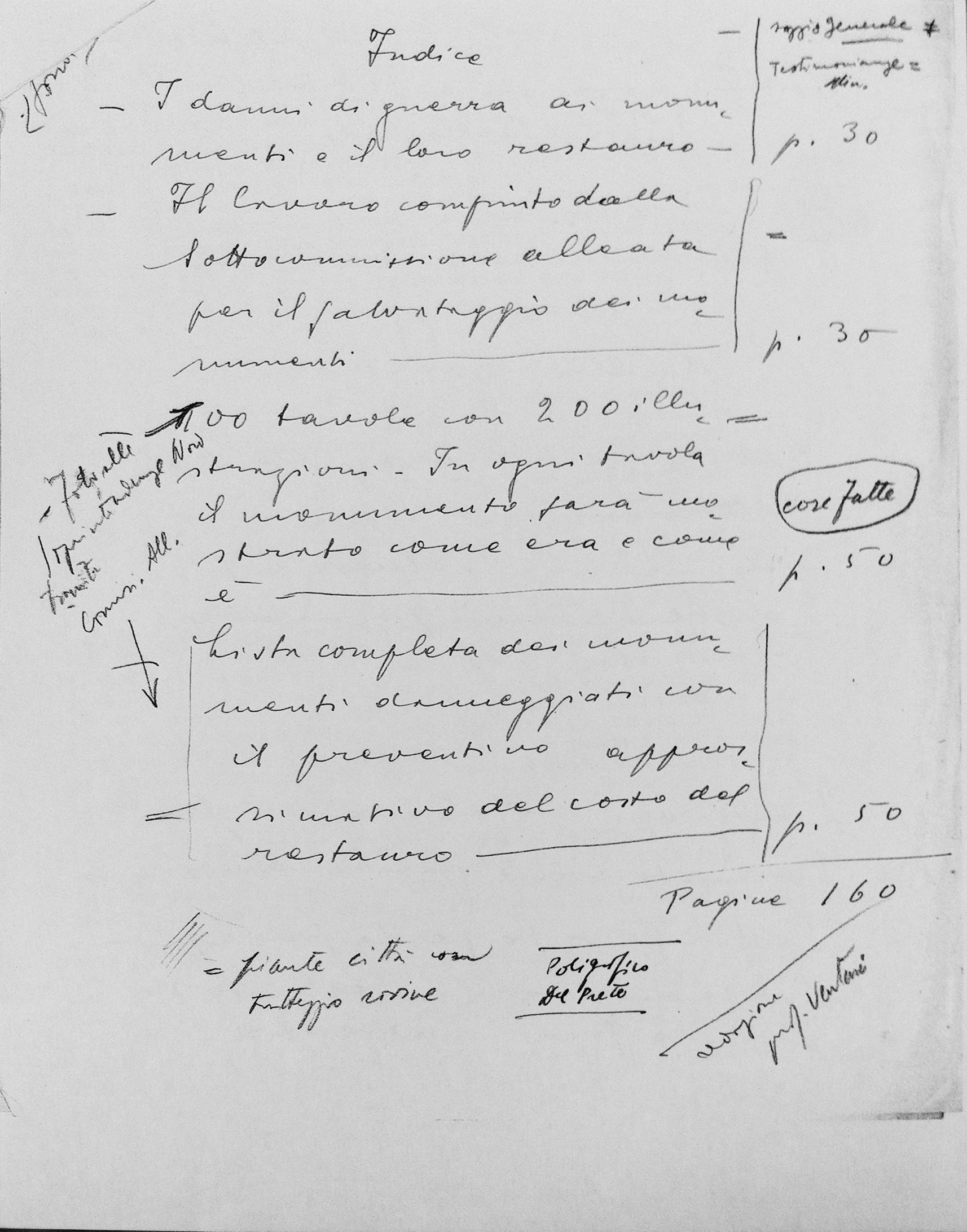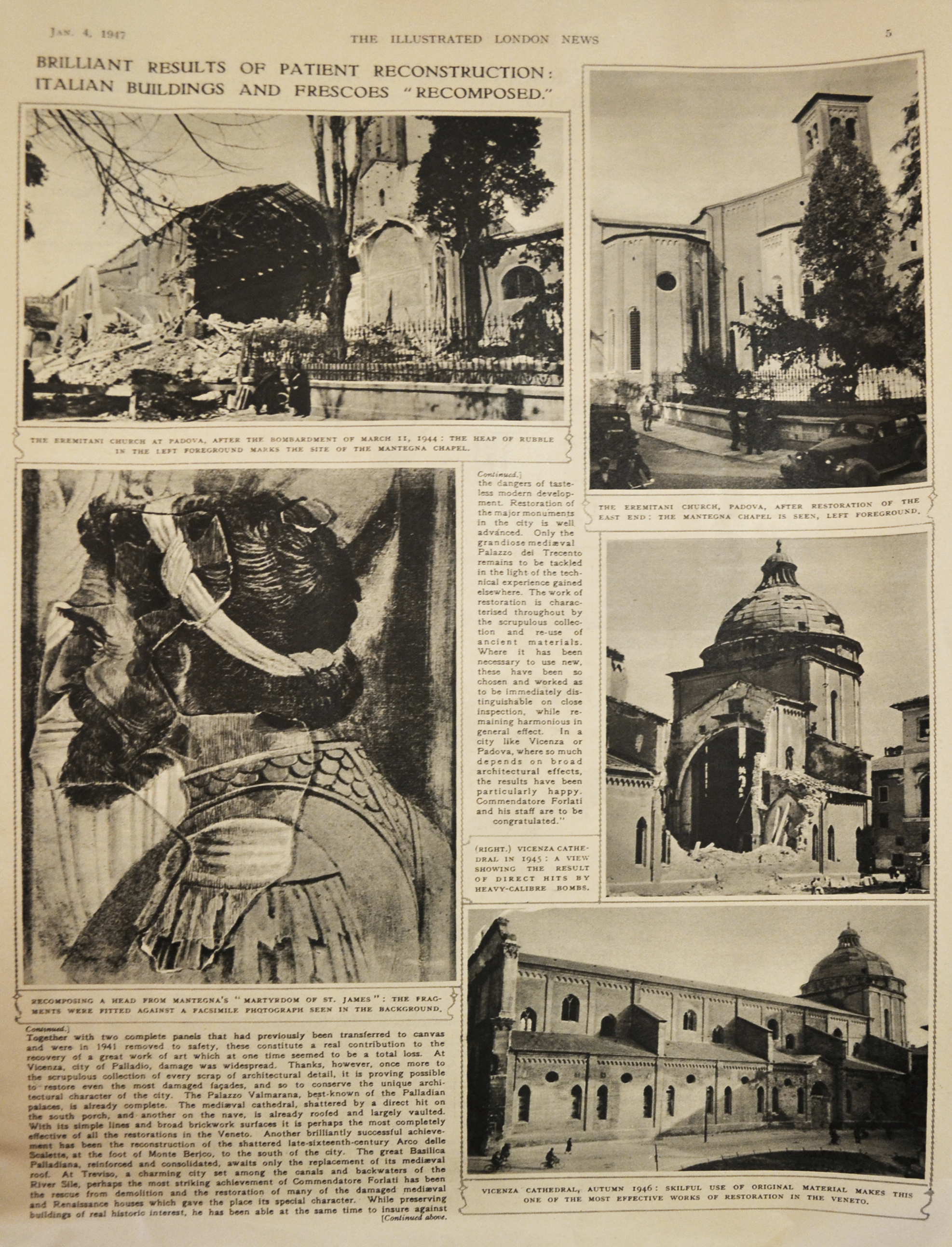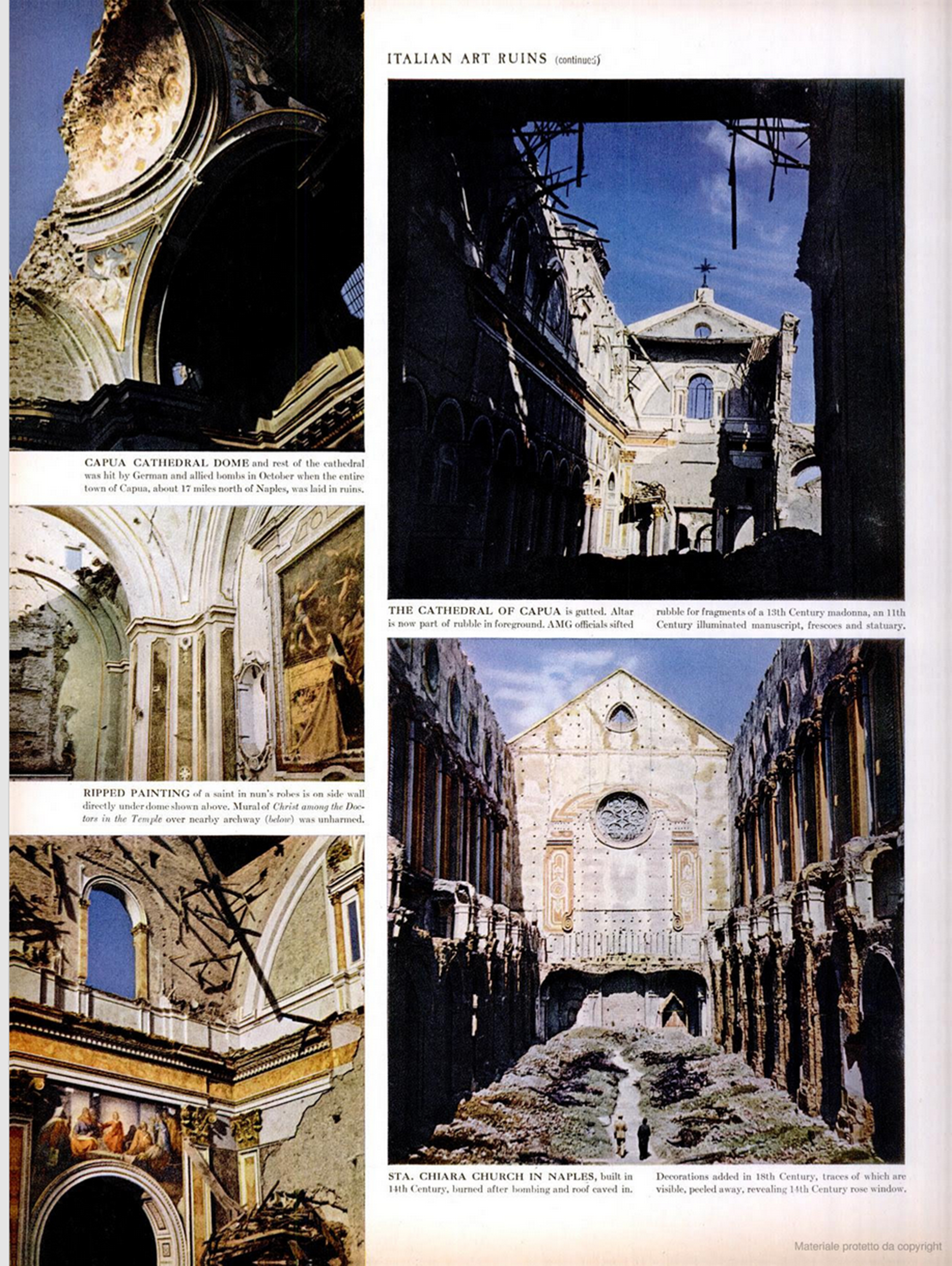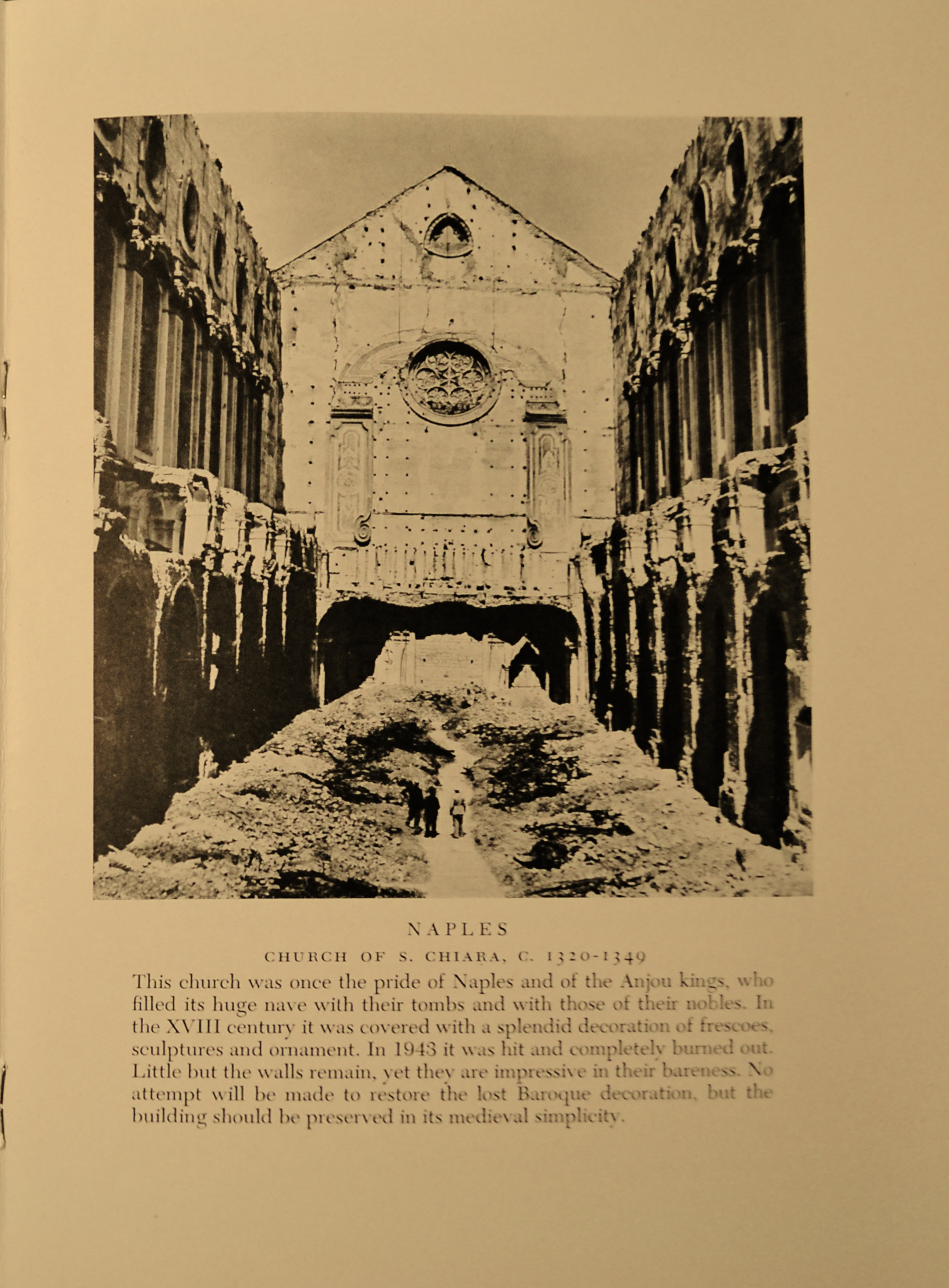 In questo processo grande importanza ebbe l’uso della documentazione fotografica, la quale, vista la carenza di risorse delle soprintendenze, fu quasi interamente affidata al governo militare alleato e ad alcuni reporter statunitensi inviati in Italia per testimoniarne le pesanti distruzioni subite dal patrimonio monumentale. Un ricco apparato fotografico venne quindi usato per sensibilizzare la popolazione, in Italia e soprattutto all’estero, al fine di incrementare la raccolta fondi.