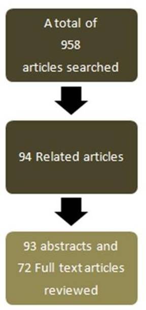 Multiple terms have been used to describe fat accumulation in the pancreas, such as pancreatic steatosis, fatty pancreas, pancreatic lipomatosis, fatty infiltration, lipomatous pseudohypertrophy of pancreas, and non-alcoholic fatty pancreas (NAFP). Gastroenterologists should be informed of this condition and its clinical correlations. Here, we review the literature regarding this pancreatic condition in terms of epidemiology, characteristics in imaging studies, etiology, clinical significance, and clinical correlation including treatment and prevention. This condition was first reported in 1993 by Ogilvie [1] who revealed that a higher incidence of fatty pancreas was observed in obese compared to lean cadavers (17% vs. 9%, respectively). Up to the present, the true incidence of fatty pancreas was still unclarified, however, there were only two studies from Choi CW et al. [2] and Seppe PS et al. [3] demonstrate as high as 27.8-46% of the patients who underwent EUS evaluation for some other reasons who had the evidence of hyperechogenic pancreas. While Wong VW et al . reported that 16.1% of Hongkong-Chinese population had pancreatic steatosis(cut-off level at higher than 10% of pancreatic fat infiltration which diagnosed by Fat-water MRI technique) [4]. There have subsequently been many clinical and basic science studies published regarded this condition. A PubMed-library based search , restricted to only human studies available in English articles, was carried out for the period between 2005 and December 2014 . The following individual and combined keywords were used: fatty pancreas, pancreatic steatosis, pancreatic fat infiltration, pancreatic lipomatosis, non-alcoholic-fatty pancreas, NAFP. The referenced obtained from the articles’ citations were also reviewed for other potential sources of information. From a total of 958 articles , only 94 related articles were obtained. All the case report and case series, retrospective cohort studies, cross section and prospective studies which all the abstracts and a total of 72 full text manuscripts were reviewed. Figure 1 shows the diagram for demonstration of the review process [5].