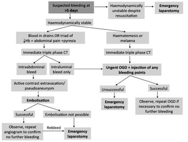 Figure 4. Algorithm for the management of late post-resectional haemorrhage. |