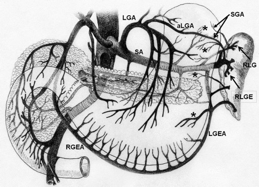 53. Barlow TE, Bentley FH, Walder DN. Arteries, veins, and arteriovenous anastomoses in the human stomach. Surg Gynecol Obstet 1951; 93:657-71. (More details: [53]).