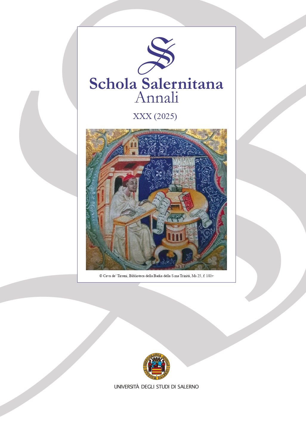Schola Salernitana - Annali è una rivista scientifica dell'Università degli Studi di Salerno, realizzata con Open Journal System e pubblicata da SHARE PRESS sulla piattaforma SeReNa dell'Università di Napoli Federico II. | Direttore responsabile: Maria Galante | ISSN (print): 1590-7937 | e-ISSN: 2532-1501