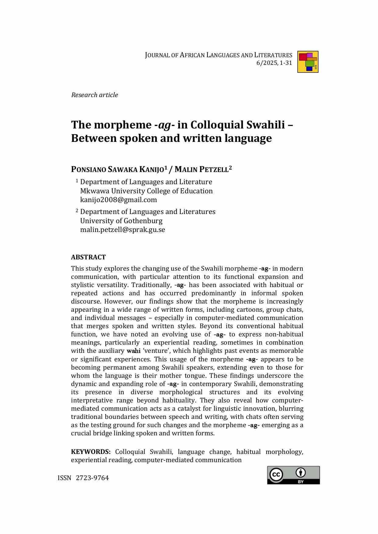 No. 6 (2025): Journal of African Languages and Literatures
