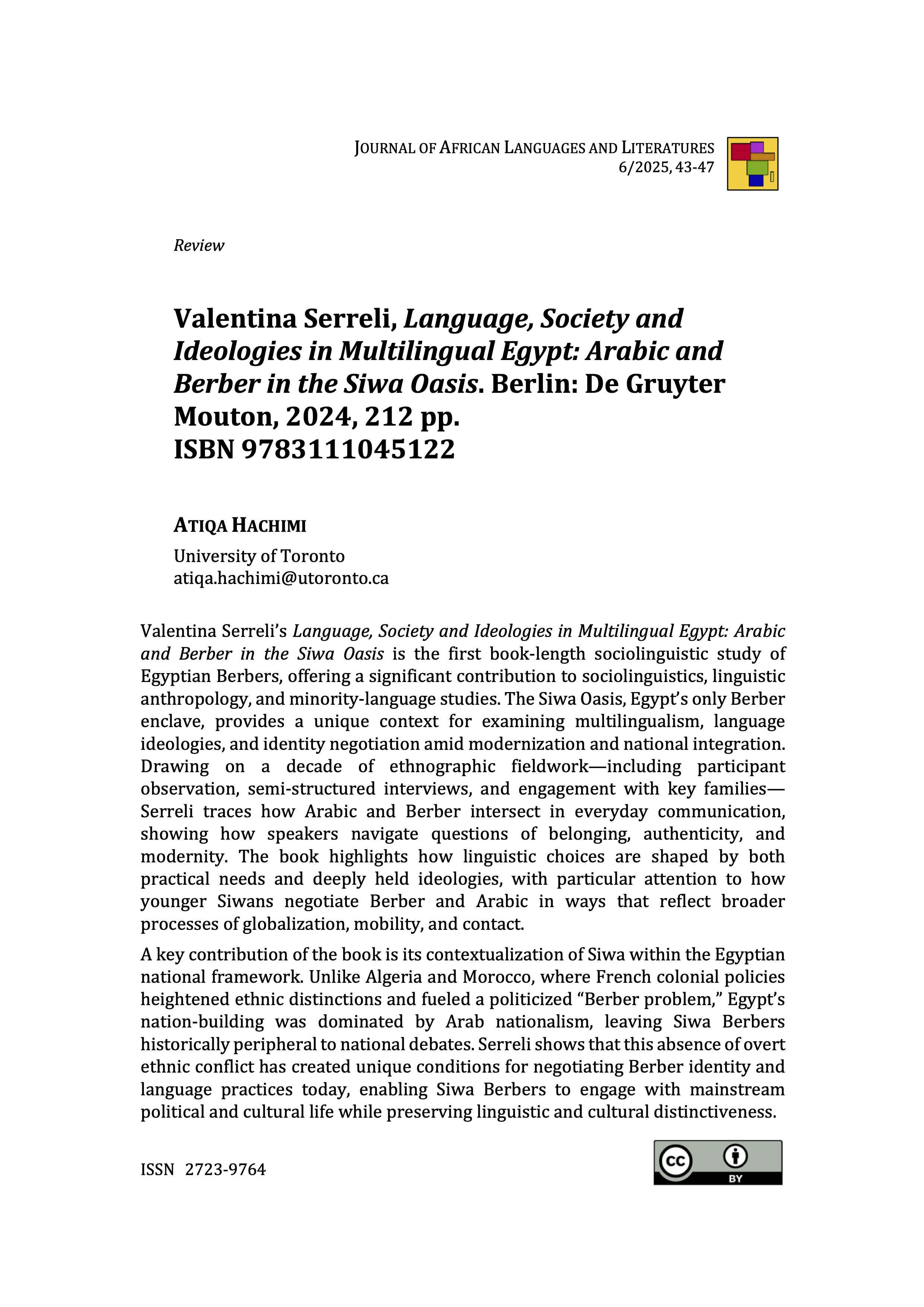 The Journal of African Languages and Literatures (JALaLit) is an electronic, peer-reviewed, open access academic journal published by UniorPress (University of Naples L’Orientale). JALaLit publishes original research articles, review articles, notes, discussions, fieldwork material and book reviews addressing the current trends in African linguistics and in modern and contemporary African literary studies.