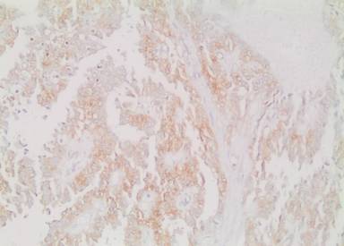 Figure 4. Tumor cells showing immunopositivity for vimentin. |