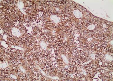 Figure 5. Tumor cells showing immunopositivity for CD56. |