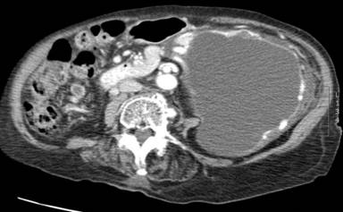 Figure 1. Large cystic tumour arising from tail of pancreas. |