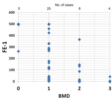 It was determined using dual-energy X-ray absorption (DXA; QDR-1000, Hologic Instruments) at the standard measurement sites in the lumbar spine and the femur. Results are presented as T scores and Z scores as previously described [10]. Classification of bone density was done according to the WHO standard [11]. Patients were advised about the added radiation risk when asked to volunteer to undergo conventional vertebral X-rays. All of the patients who were asked agreed to the X-rays. The BMD on the conventional X-ray was graded semiquantitatively, as described: normal, 0; mild, 1; moderate, 2; and severe, 3. Once a reduction is clearly seen, this can be considered already substantial (scored 2) [12]. Complete demineralisation, i.e. osteoporosis was scored 3.