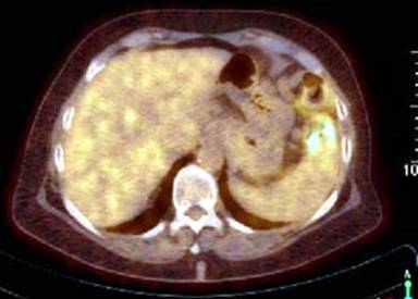Figure 6. PET-CT-scan in May 2014. No increased signal within the liver parenchyma is detectable. |