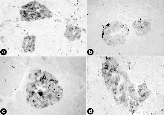 There was no information available on the glucose metabolism or other clinical biochemistry data from the patients. All tissues were fixed in buffered formalin and prepared for histology by conventional methods and cut into 4 µ sections. In some cases, serial sections were prepared. Islets were prepared, cultured and stained as described previously [7, 8].