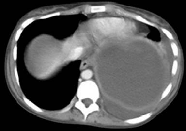 Figure 3. Large pseudocyst in splenic area (Case #2). |