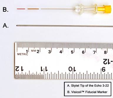 Figure 1. ECHO TIP® (3-22) needle for small caliber fiducial placement. |