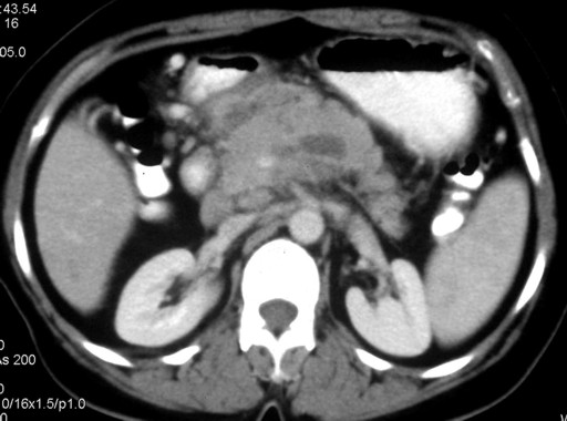 Abdominal tuberculosis includes the infection of varying combinations of the intestinal tract, peritoneum, lymph nodes and solid organs, such as the liver, spleen, and pancreas. Involvement of solid abdominal organs is usually seen in association with miliary tuberculosis. Isolated abdominal organ involvement, especially of the pancreas, is unusual, even in the setting of miliary disease (ranging from 2.1 to 4.7%) [3, 4]. Postmortem analysis of 300 miliary tuberculosis patients over twelve years in India did not reveal even one with pancreatic involvement [3]. This is probably due to the antibacterial effect of the pancreatic enzymes [1].