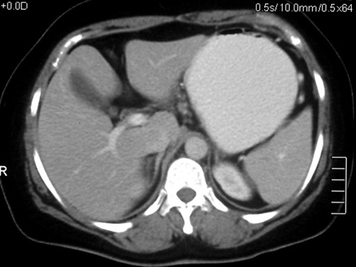 A 40-year-old female presented with abdominal pain of three months duration. The pain was located in the upper abdomen with radiation to the back. There were no exacerbating factors and the pain subsided with the ingestion of oral opioids. The patient also complained of weight and appetite loss. There was no history of alcohol ingestion. Her laboratory studies revealed an elevated erythrocyte sedimentation rate (46 mm in first hour; reference range: 0-20 mm) and were otherwise unremarkable. Serum amylase was 320 IU/L (reference range: 0-160 IU/L). A chest radiograph did not reveal any abnormality. Ultrasound of the abdomen did not reveal any abnormality and the pancreas was obscured by the bowel gases. Contrast-enhanced computerized tomography (CECT) of the abdomen demonstrated the bulky head and body of the pancreas with heterogeneous areas of non-enhancement suggestive of necrosis and peripancreatic fat stranding (Figure 1). The splenic vein was not visualized which was suggestive of thrombosis. The CECT findings were suggestive of focal pancreatitis involving the head and body of the pancreas with splenic vein thrombosis. As the patient had no history of severe pain which required admission, had ongoing chronic pain with loss of weight and appetite and a bulky head and body of the pancreas, image-guided fine needle aspiration was carried out to exclude a pancreatic malignancy. The cytological examination of the CT-guided fine needle aspiration revealed caseous necrosis. No acid-fast bacilli could be demonstrated. The Mantoux test was negative. However, a culture of the aspirated material demonstrated the growth of Mycobacterium tuberculosis. The patient was treated with anti-tubercular therapy for twelve months (four drugs for two months and two drugs for ten months). The patient improved with the therapy and was asymptomatic after completing two months of therapy. A repeat CECT of the abdomen performed after completion of the therapy revealed a normal pancreas with no focal lesions (Figure 2). The splenic vein was attenuated and collaterals were noted at perigastric, perisplenic and gastrohepatic locations (Figure 3). No varices were noted on upper gastrointestinal endoscopy. After four months of follow-up, the patient is asymptomatic.