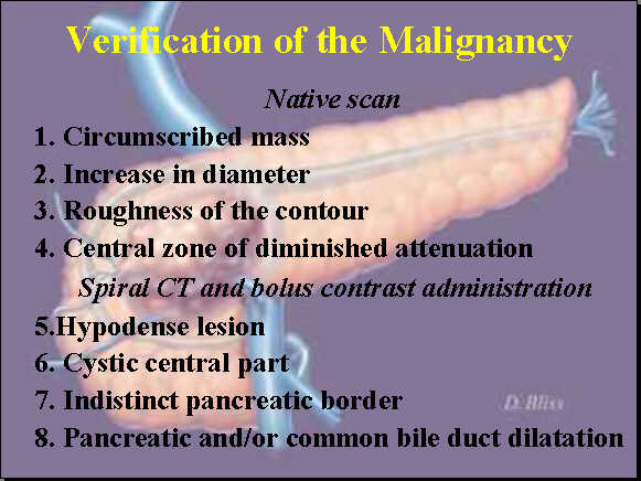 pancreatic head with inhomogeneous parenchyma. Small hypodense