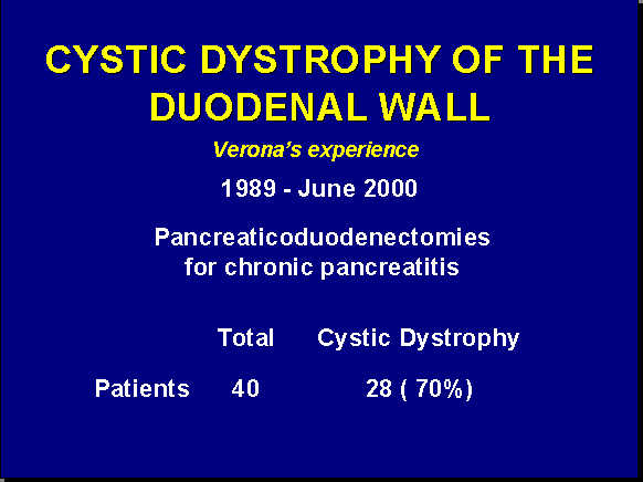Cystic dystrophy of the duodenal wall – solid variant. Spiral CT examination in the venous contrastographic phase shows a thick, solid sheet-like mass between the duodenum and the pancreatic head. The fibrotic tissue is clearly hypodense in comparison to the pancreatic parenchyma.