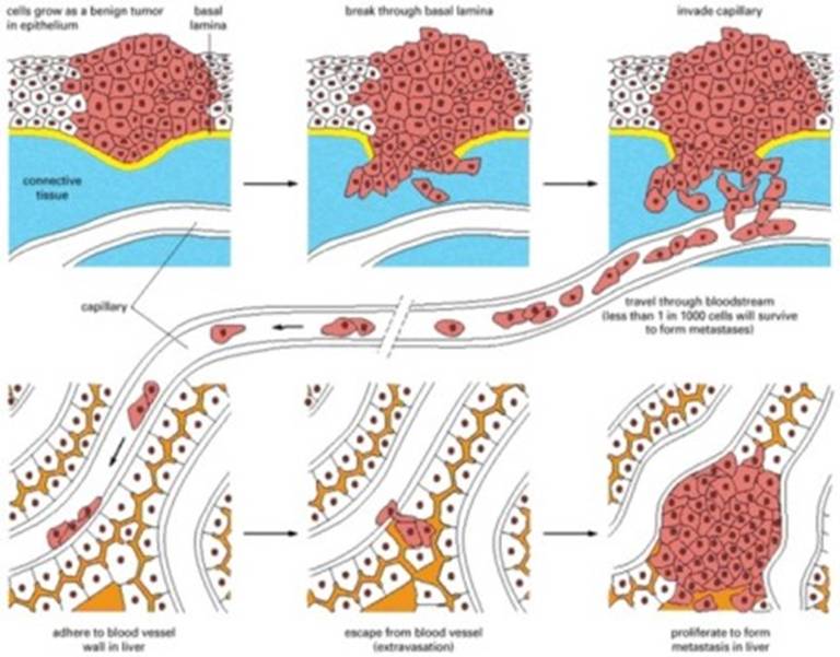 Figure 1. Circulating tumor cells and process of metastasis (copyright ©2002 from Molecular Biology of the Cell by Alberts et al. [21]. Reproduced by permission of Garland Science/Taylor & Francis LLC). |