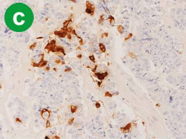 VIP (scattered), Calcitonin (++) |