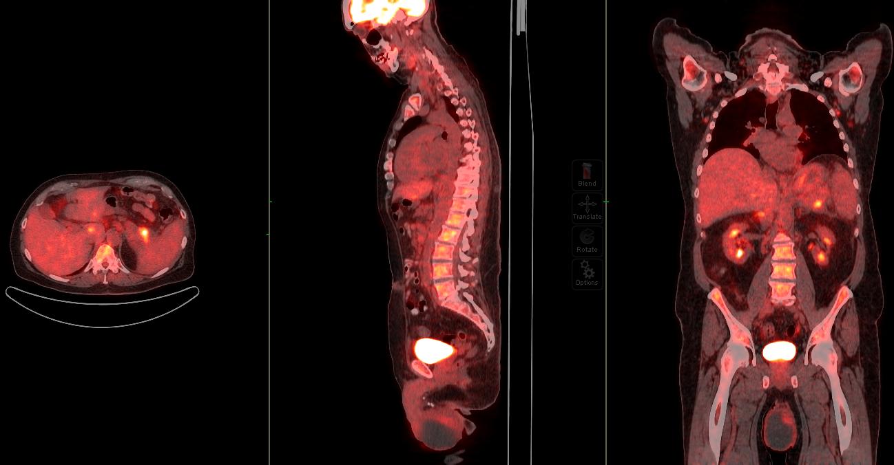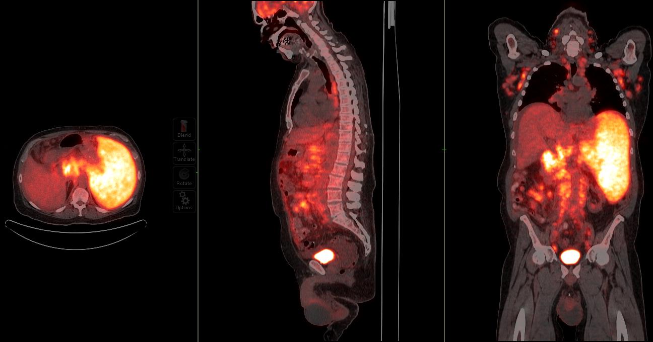 Image: PET/CT scan showing extensive FDG-avid tumor featuring.
