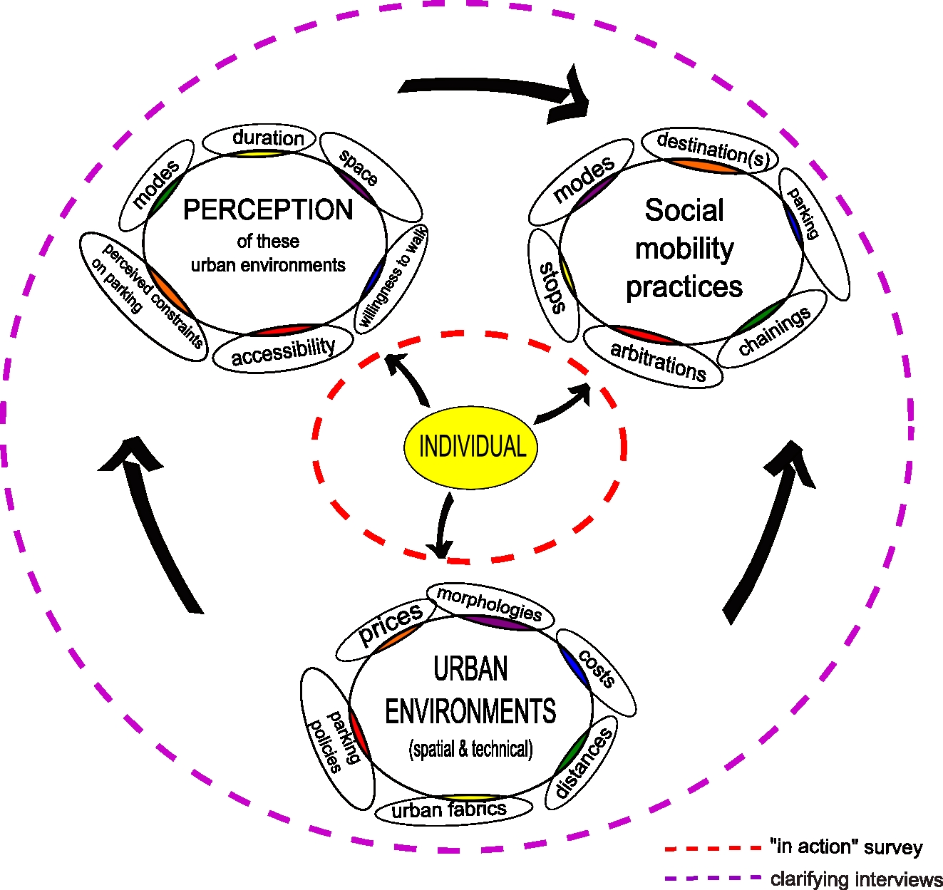 Incriminated for negative externalities such as both local and global pollution, noise, sealing extension or public space high consumption, private cars have been perceived as a factor of un-sustainable mobility since the early 80’s by urban planners and designers. In the new paradigm of the so-called “sustainable city” urban planners and designers target now a modification of social behaviour and particularly social mobility practices. The production of transport alternatives and restrictions to automobiles in city centres through car-parking limitations and fare systems as developed in urban mobility plans (Plans de Déplacements Urbains) are unfortunately too weak to generate a modal shift ripple-effect in French cities. Considering the last issue of the French national institute of statistics and economic studies’ survey (Hubert, 2009) the modal-share in favour of car-transit remains the same for the period of time between 1994 and 2008 for the biggest French cities, in spite of steady efforts for the development of public transportation alternatives such as the diffusion of the tramway’s comeback (from Grenoble 1986, to Dijon 2013). According to a series of relatively recent research papers (Kaufmann, 2002 ; Lefevre & Offner, 1990) focused on the “economically irrational” behaviour of the majority of private-car drivers concerning the question of modal shift, a research framework has been developed. This frameworks specially focuses on the disconnect between the rationalities of resistant car-driver’s social mobility practices in the metropolitan space, compared to the rationale of urban mobility masterplans has, assuming that user’s “tactics” answer planner’s “strategies” (De Certeau, 1990). This approach of identifying this disconnect between rationalities in planning and rationalities in social practices in the urban mobility context is aimed to extend to the complex perception of urban environments by car-drivers, to identify new targets of modal-split policies to be structured as new action-levers. This perception will deal with several issues orchestrated through urban design projects such as public spaces, physical distances or parking constraints. The second main issue of this conceptual framework deals with rationalities of user’s mobility practices. The axiological rationality (Boudon, 1995) seems to be heuristic to question values and practices, searching for the rationale behind the conclusions that users draw when making mobility decisions (for example “the car is faster in my situation”). This justification process needs to be finely analyzed in combination with several concepts, norms and values that “make sense” for the individual. We propose the hypothesis that the combination of perception biases and axiological rationalities could helps to explain behaviors defined as “irrational” for urban mobility planners and to delineate the major levers of social acceptation and adoption of so-called sustainable urban environments.Downloads