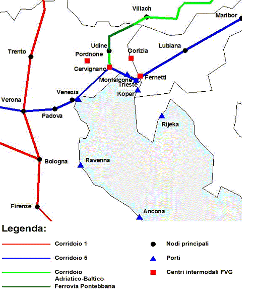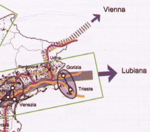 - an international double railway such as the “Pontebbana” that links the North-East area of Italy with Austria, through the Alpine pass of Tarvisio, and which is already the southern segment of the Adriatic-Baltic corridor.