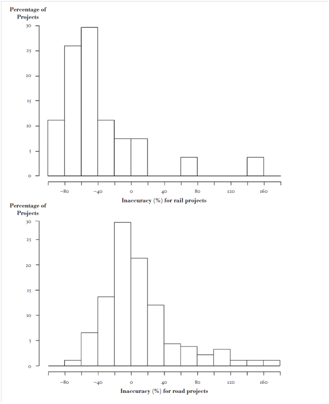 Bain R. (2009) “Error and optimism bias in toll road traffic forecasts”, Transportation, 36, 469-482.